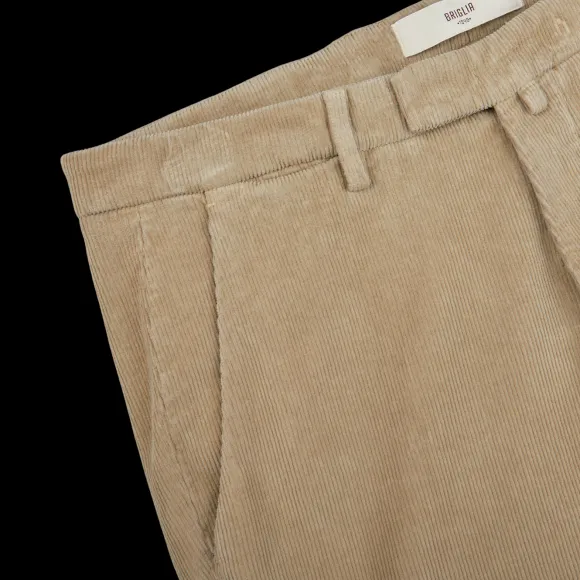 A Pair Of Light Beige Seasonal Trousers From Italian Trouser Specialist Briglia, Made Of Cotton Corduroy With A Touch Of Stretch For Comfort, Which Then Has Been Washed To Obtain A Worn-In Look. Made As A Slim Fit, With A Medium Rise And Tapered Leg. Details Include A Zip Fly, Belt Loops And Five Pockets.
