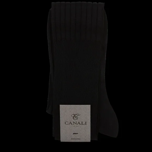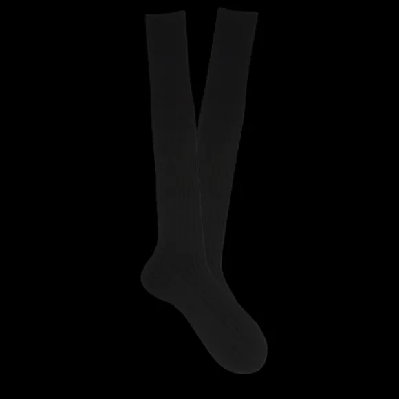 Canali Socks | Black Knee Long Ribbed Cotton Socks
