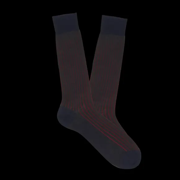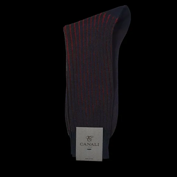 Canali Socks | Navy Red Ribbed Cotton Vanisee Socks