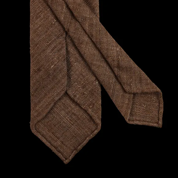 Drake’s Ties | Brown Handrolled Silk Tussah Tie