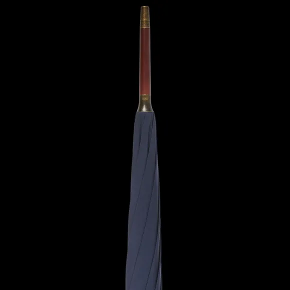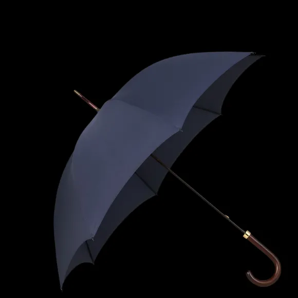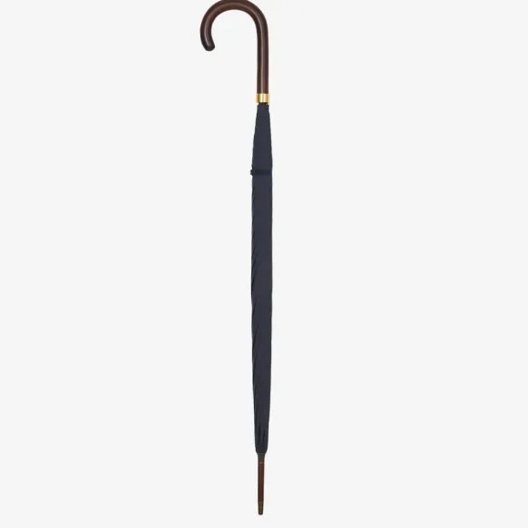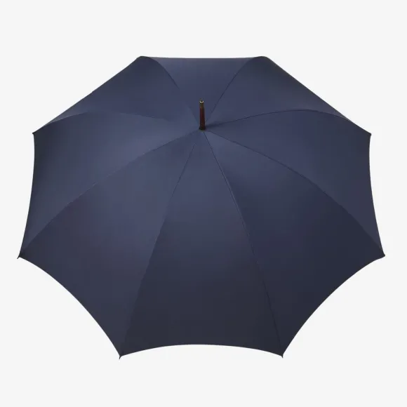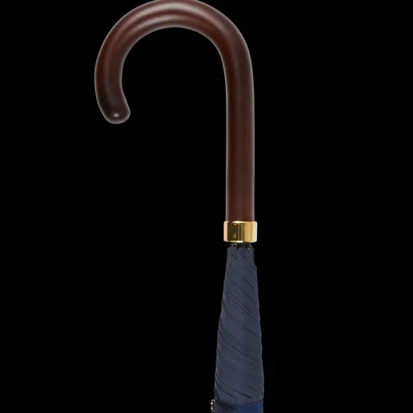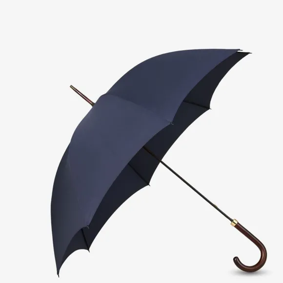Fox Umbrellas Specialises In Crafting The Finest Umbrellas Handmade In England. Presented Here Is A Navy Blue Umbrella With A Crook- Handle Of Polished Maple. Fitted With An Eight-Rib Metal Frame, Golden Details And Nylon-String Fastening. Perfect For When The Weather Turns Sour.