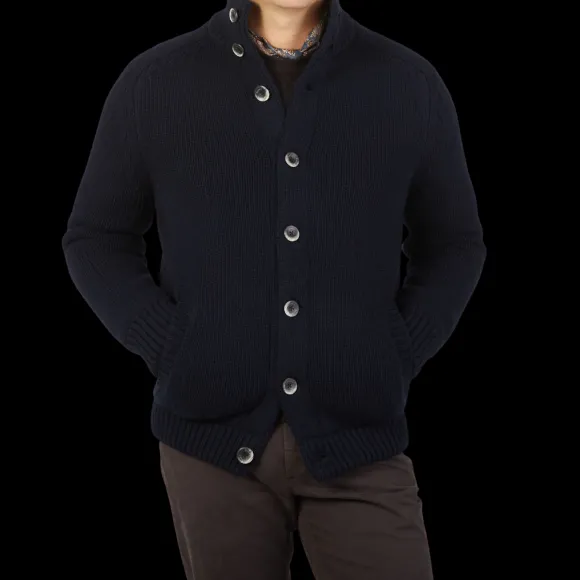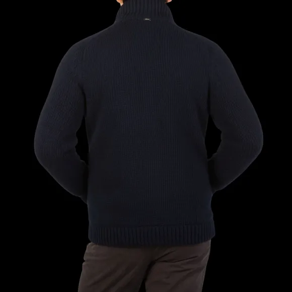 Herno Knitwear | Navy Blue Wool Knitted Blouson