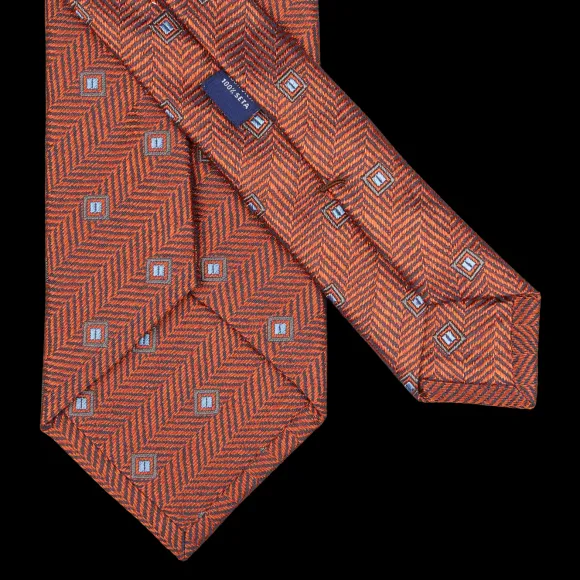 An Orange Herringbone Woven Tie From Silvio Fiorello, Made In Italy From Pure Silk. Made In A Fully Self-Tipped 3-Fold Construction And Finished In A Length Of 150 Cm And A Width Of 8Cm.