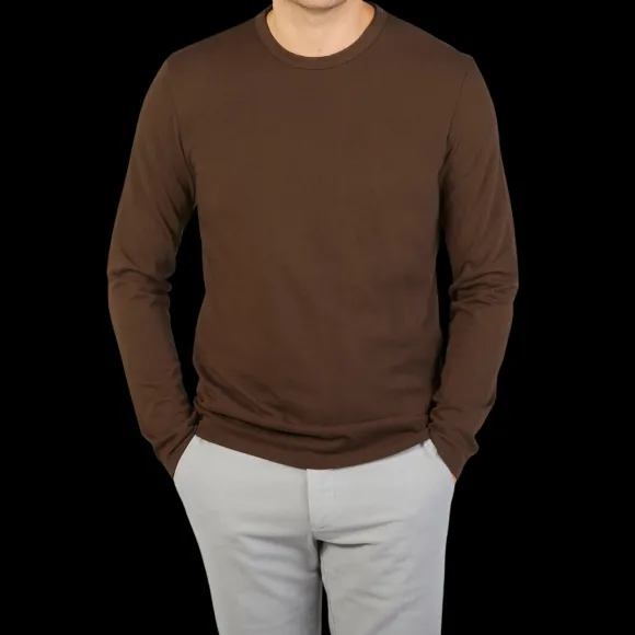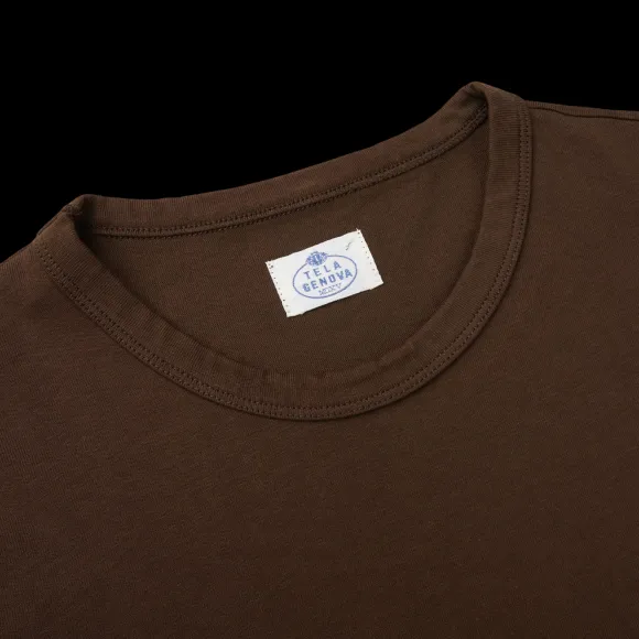 The Italian Brand Tela Genova Is Renowned For Making Heritage Clothing From A Traditional Point Of View. Here Is Their Staple Long-Sleeve T-Shirt In Dark Brown, Crafted Using Organic Cotton That Has Been Washed To Obtain A Vintage Look.