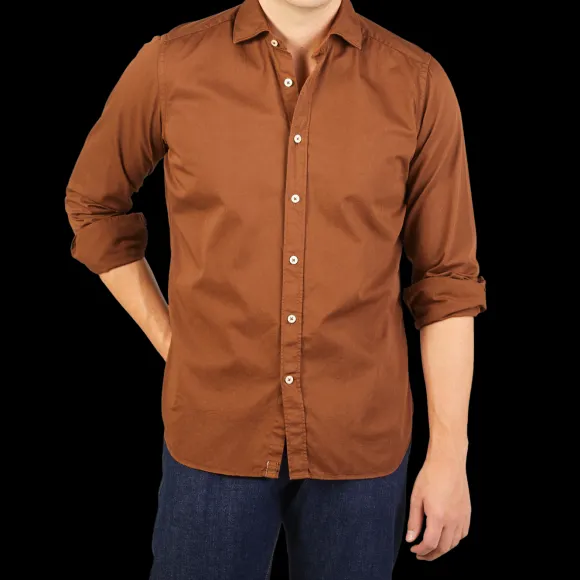 Tintoria Mattei Shirts | Tobacco Overdyed Cotton Poplin Shirt