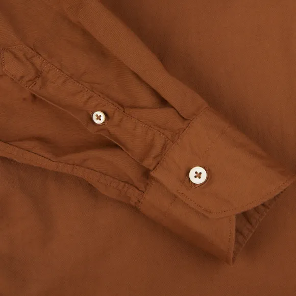 A Tobacco Brown Seasonal Shirt From Tintoria Mattei, Crafted Using A Pure Cotton Poplin That Has Been Overdyed And Washed To Obtain A Vintage Appearance. Made As A Contemporary Fit That Is Shaped To Enhance The Features Of Your Body Without Being Too Tight. Details Include A Cut-Away Collar, Front Placket And Single Cuffs.