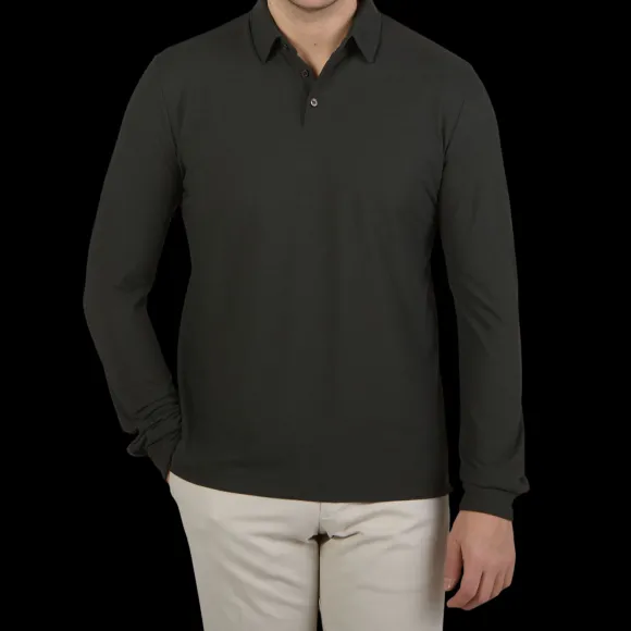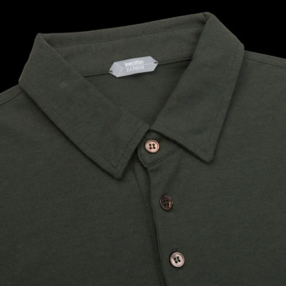 Zanone Presents A Long-Sleeve Polo Shirt In Moss Green, Made Of Their Patent Ice Cotton Fabric. Ice Cotton Is A Jersey M…